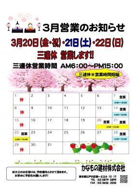 2025.03.07 2025.3月 営業のお知らせ